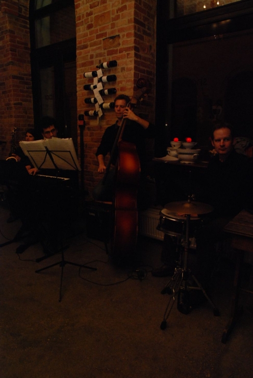 Új programsorozatot indítottunk el november 20-án a Doblo Borkereskedéssel és Élménytérrel együttműködésben. Az élő dzsesszkoncertre a Mitrio kvártet jóvoltából került sor, amelynek tagjai szaxofon, dob, zongora és nagybőgő segítségével keltettek életre hol lágyabb, hol tüzesebb dallamokat. Az este természetesen legalább annyira a borokról is szólt: úgy gondoltuk november lévén legstílusosabban egy újbor sorral szolgálhatunk a zene- és borszeretőknek. Az est folyamán a Villányból érkező Kvassay Levente személyesen kóstoltatta friss sauvignon blanc, kékfrankos rosé és portugieser borait a jelenlevőkkel, akik e mellett megízlelhették még többek között egri, pannonhalmi, szekszárdi és balatonfüredi borászok Márton napi remekeit is.