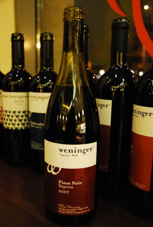 Októberi klubkóstolónkon a soproni Weninger Pincészet tíz borát vettük sorra, amelyeket Lukács Szabolcs mutatott be. Az este az aktuális borokkal, egy fehér és egy vörös pinot noirral indult, majd az újdonságnak számító 2008-as Sopront és a 2007-es Cabernet Sauvignon-t követően a pincészet kékfrankosainak második szintjét jelképező Balf került a poharunkba. A kóstoló második felével már az évtized első felébe nyúltunk vissza, syrah-t például két évjáratból is nyitottunk, megfigyelve a hűvös 2005 és a meleg 2003 közötti különbségeket. Az este egyik legérdekesebb tétele a palackérlelés jegyeit szépen hordozó, remek formában lévő 2001-es Frettner volt, a pontot az i-re azonban a pincészet csúcsbora tette fel a Spern Steiner Kékfrankos formájában.